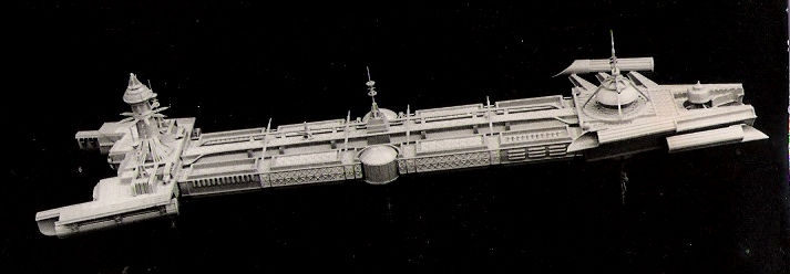 It is almost impossible to replicate the “glowing” look of the ship as it hangs in orbit around the Black Hole. The design has been likened to a gigantic Gothic building, floating in space. Attempting to drill out the space between the frames would leave a model that is made up of extremely fragile plastic beams, and it is doubtful that the kit would even be able to support its own weight.