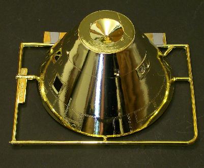 According to the information on the box, the Command Module itself is colored gold chrome to simulate the gold-foil covering. While this is a nice touch, it’s going to prove difficult to color-match once the part is separated from the sprue. An alternative might be to purchase some Dupli-color Instant Gold Chrome spray paint from your local auto parts store, and use that to paint the entire gold shield.