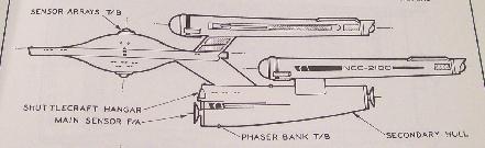 This is one of the old McDaniel’s Models kits that was released in the late 1980’s and early 1990’s. The ship is classified as a drednaught, and is based on some of the original Franz Joseph designs. The ship is in scale with the original AMT TOS Enterprise kit. This is the “big gun” when it comes to Federation ships as it is 320 meters long (compared to the Enterprise at 288.6 meters). With its triple-nacelle design, it packs more firepower and a larger crew (500) than the Enterprise (430). The design first appeared in the original Star Fleet Technical Manual that was released in 1975 (which I have a copy of, including the black plastic slipcover with the gold lettering).