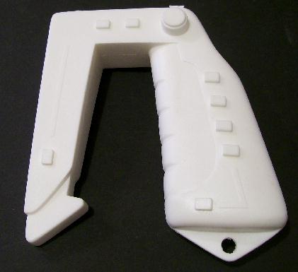 The review kit was obtained in 2005, and is solid cast. The kit is cast in off-white resin, and is mostly free from flash and voids. The design of the kit allows the builder to slide the setting switch back and forth between the two settings. There are three prominent pour stubs located on top of the kit, but after they are removed, their locations will be hidden by the setting switch and the trigger.