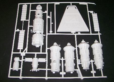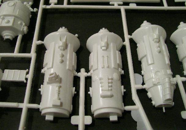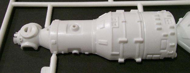This kit is very simple, and does not have a lot of detail. Modelers wishing to add details will find it to be an excellent starting point. As an example, the solar panels are divided into squares, with each square being further divided into four quarters. The molded-in detail stops at that point – it doesn’t include the hundreds of reflective panels that normally make up solar arrays. The main kit parts are the same way. The large braces and supporting structures are present, but the small detail is missing.